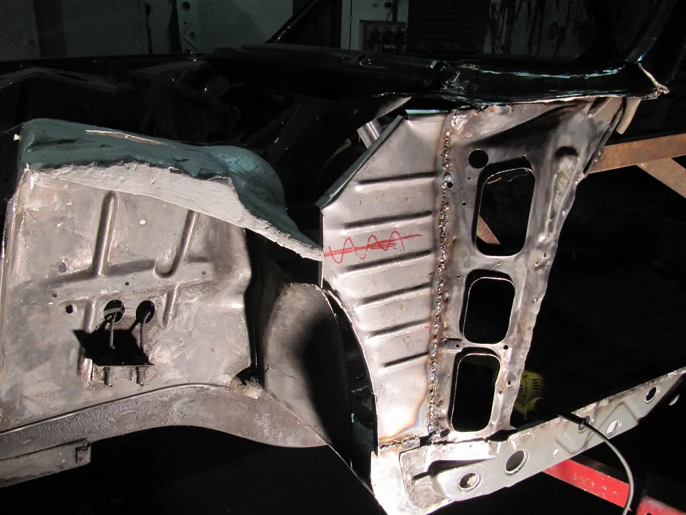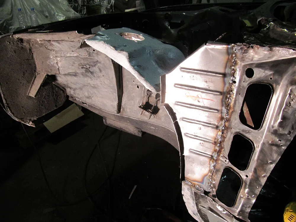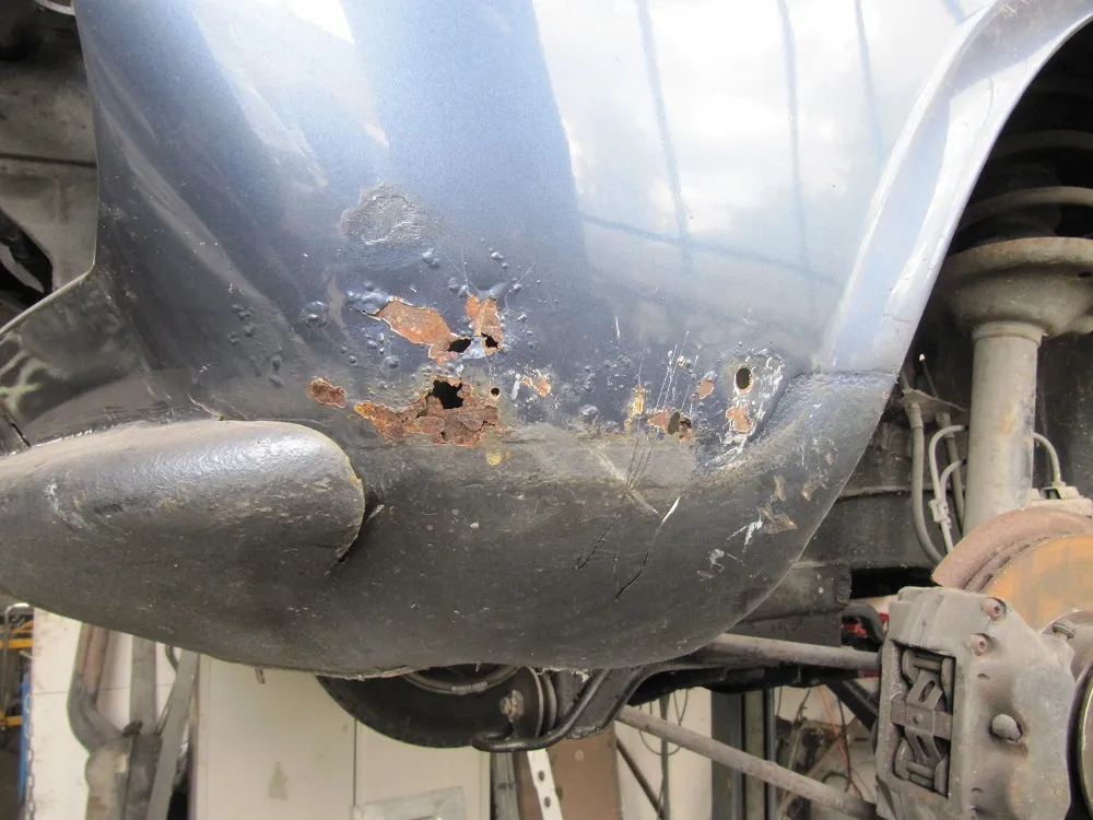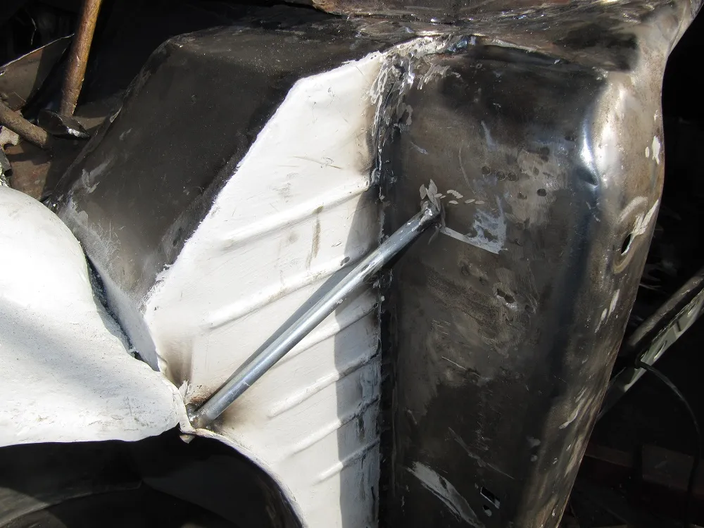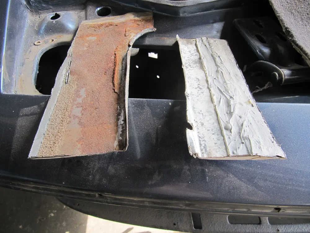 Von EKKI habe ich die beiden hinteren Seitenteile bekommen, die er zusammen mit seinem E9 übernommen hatte. Das waren mMn auch schon ersetzte Teile und die linke Seite war mit Ausnahme einer Beule vor/über dem Radlauf in einem Superzustand. Das rechte hatte ein klein wenig mehr an Aufbereitung nötig und mußte am hintere Ende des Radlaufs geschweißt werden, hatte auch eine dicke Spachtelschicht auf einer Delle vor/über dem Radlauf, war aber auch gut zu retten. Auch die Teile bekamen 2fach Brantho Korrux verordnet, die Radläufe innen zusätzlich mit Karosseriedichtmasse versiegelt (hatte ich bei den vorderen Kotflügeln auch gemacht) und bekamen an den neuralgischen Schwachstellen innen zusätzlich Unterbodenschutz.