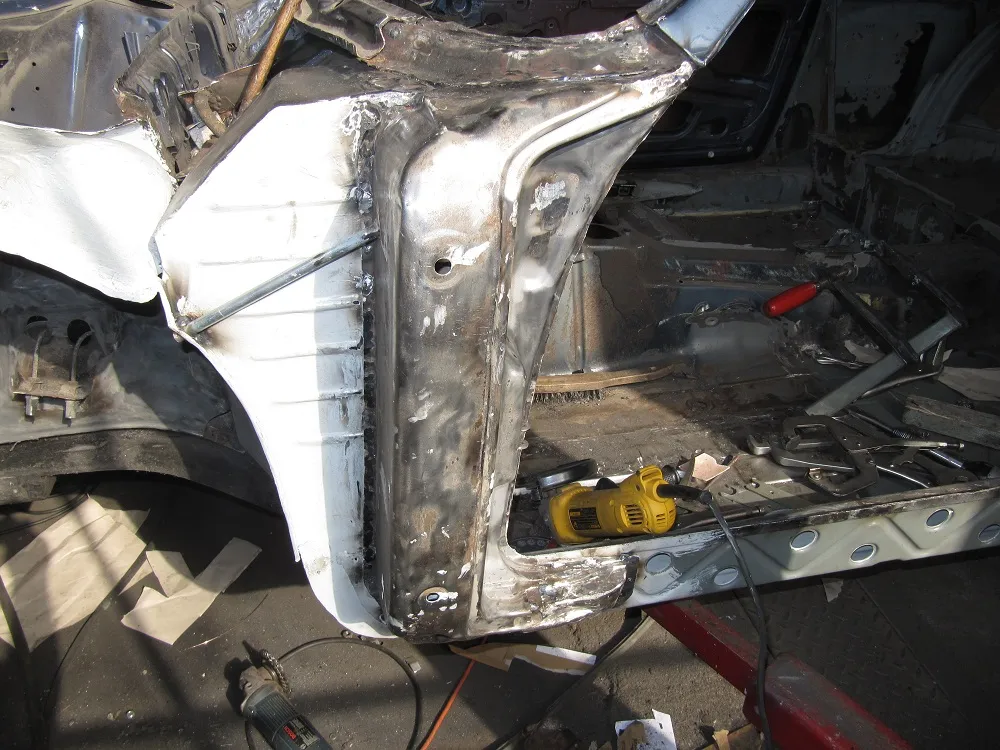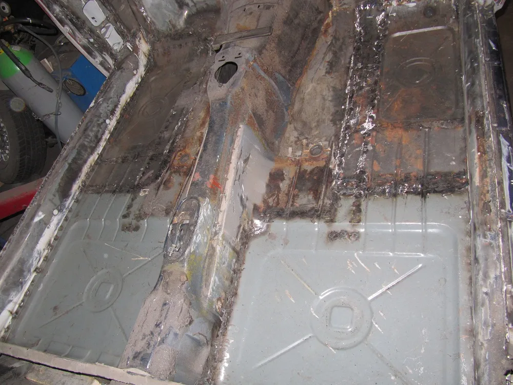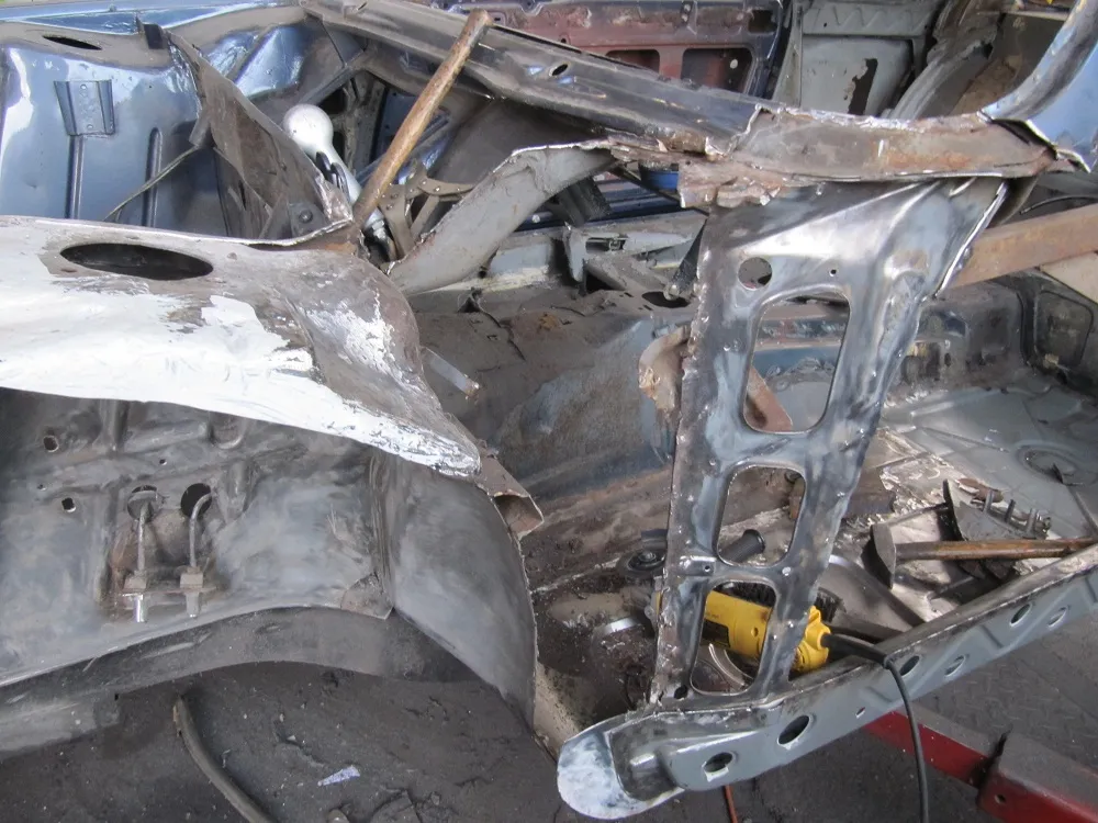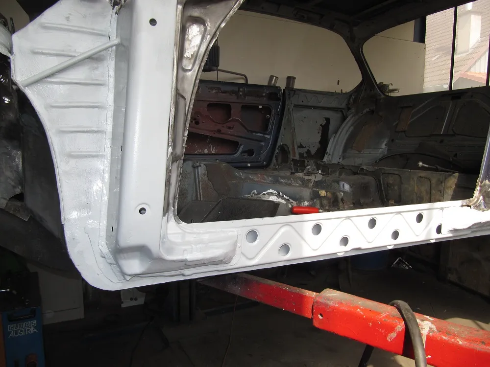Es würde jetzt etwas zuweit führen, zu erklären, warum ich den Plan ändern mußte und vor gut 2,5 Wochen angefangen habe den Wagem komplett zu zerlegen und dann am letzten Wochenende den Startschuss für die nicht ganz unerheblichen Blecharbeiten zu geben.
