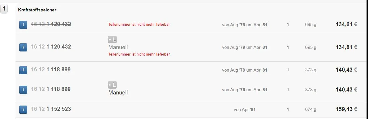 Die für noch ältere Baujahre kosten 459,00 und die ab 08/1978 180€.