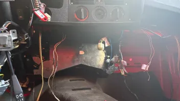 Nachdem das Armaturenbrett drin war, kamen die ersten Bedienelemente hinein. Die Kontrolleinheit für die Heizung, deren Bowdenzüge mich heute noch wahnsinnig machen… die wollen einfach nicht richtig sitzen! Aber auch die Schalterleiste mit seinen dazugehörigen Schaltern und Knöpfen sowie die Instumentenkombi haben schonmal provisorisch ihren Platz eingenommen.