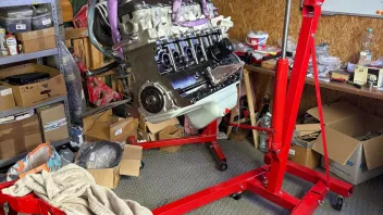 Der Motor hängt am Kran und kann in das Auto gehoben werden. Zu zweit war das absolut unproblematisch und ein paar Minuten später das Ergebnis: