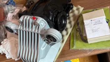 Leider wurde unser Tag durch eine nicht passende Dichtung für den Motordeckel vorzeitig beendet. Ich habe ungefähr die gleiche Zeit, die wir bis dahin mit Schrauben verbracht haben, diese Dichtung gesucht. Da mein Vater alles in doppelt und dreifacher Ausführung hat musste diese Dichtung auch irgendwo sein, aber das suchen war vergebens. Also Sachen packen, aufräumen und warten bis eine Neue da ist.