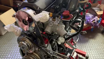 Ich muss sagen es ist schon ein unbeschreibliches Gefühl zu sehen, wie der Motor den man selber zusammengebaut hat endlich in dem Auto sitzt. Also nochmal: Vielen Dank dir Billy!!Jetzt geht’s dann darum, die ganzen Schläuche wieder richtig anzuschließen und den Rest der Teile wieder im Motorraum zu verstauen.