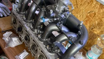 Das gleiche dann mit dem Zylinderkopf, an den auch gleich die Ansaugbrücke mit ihren Anbauteilen.