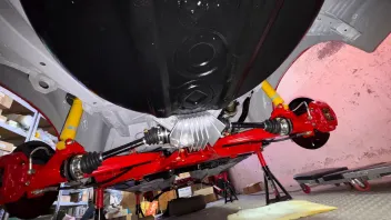 Zudem ist seit neustem die Hinterachse so gut wie fertig, da ich das Differential und die Achswellen endlich einbauen konnten. Der Baur bekommt sogar den Diff-Deckel von Alpina. War ein ganz schöner Act alleine auf dem Rücken liegend und nur mit einem Wagenheber bewaffnet.
