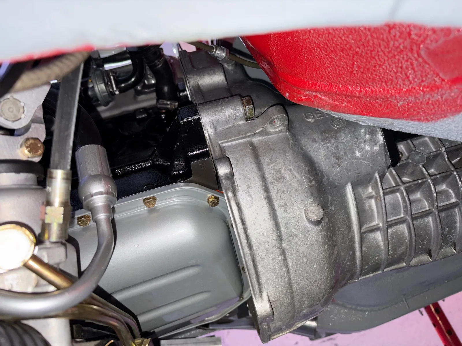 Die letzten Wochen ist erstmal sehr lange nichts passiert. Nach meinem letzten Post hier ging es nach dem Einbau des Motors dran, das Getriebe von unten in das Fahrzeug reinzuheben. Ich bin in meiner Werkstatt leider sehr limitiert und das höchste der Gefühle sind Böcke, auf denen ich das Auto in die Luft heben kann. Nachdem ich natürlich auch noch nie ein Getriebe eingebaut habe, war mein Schlachtplan also Folgender: