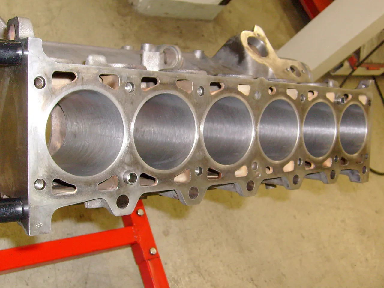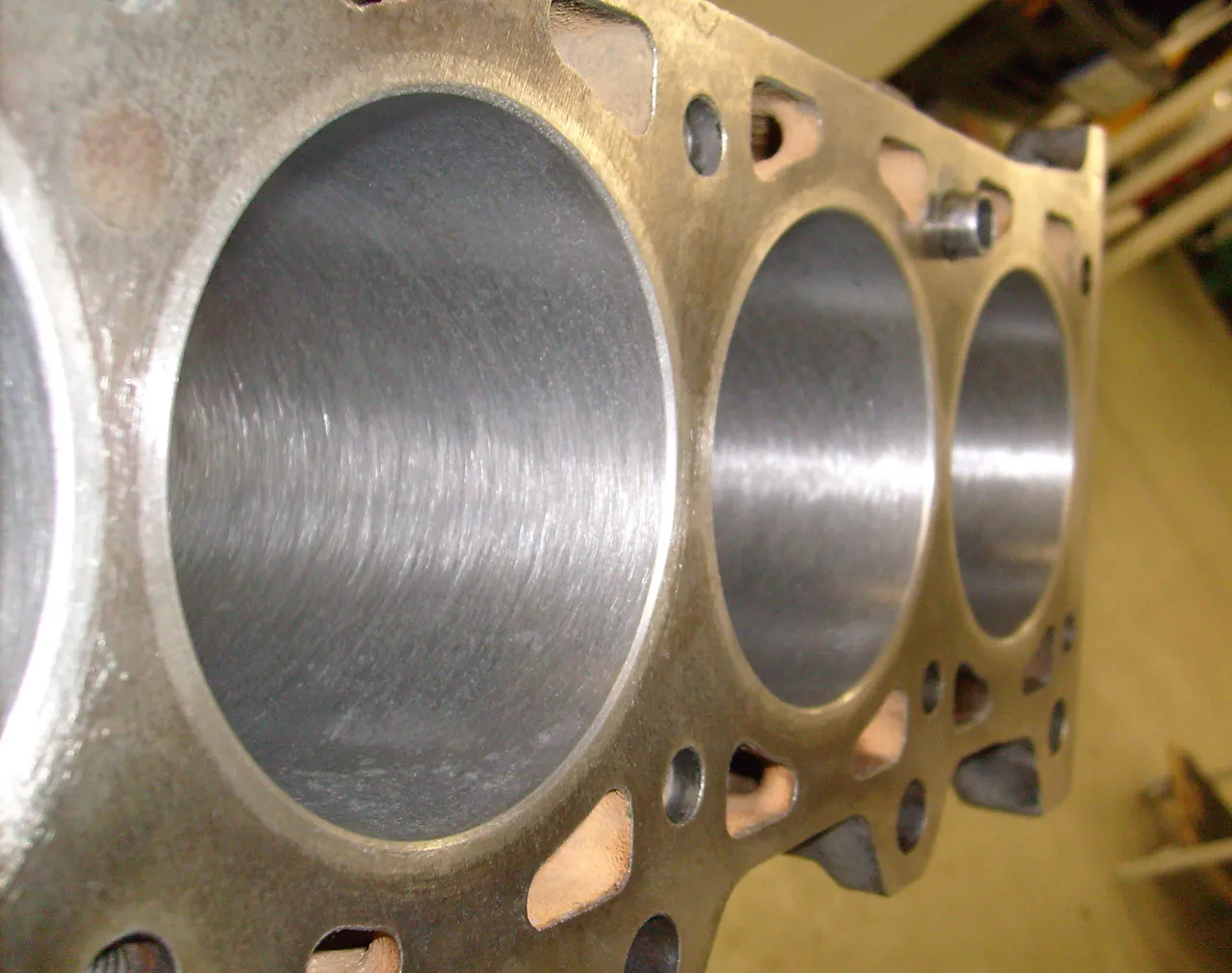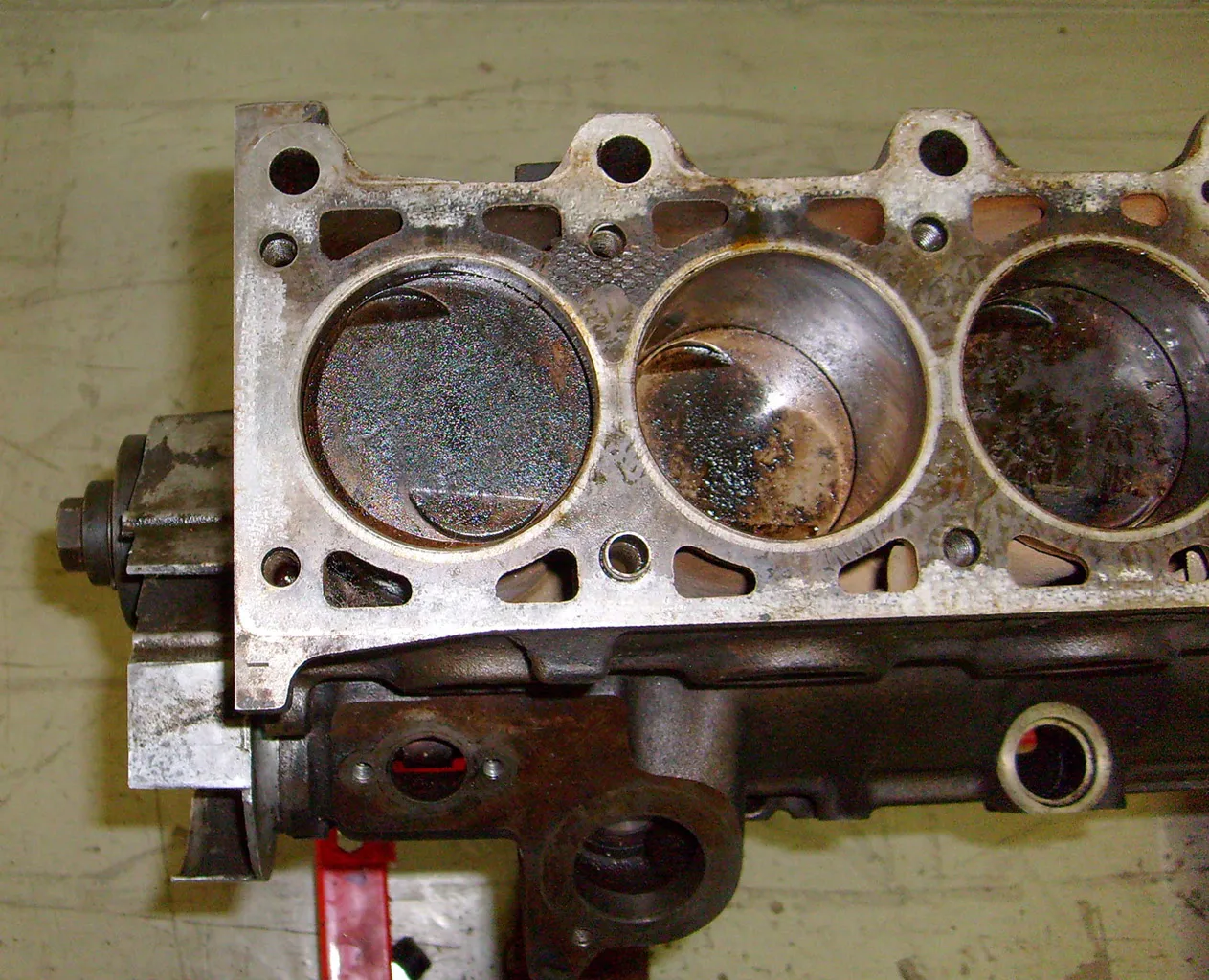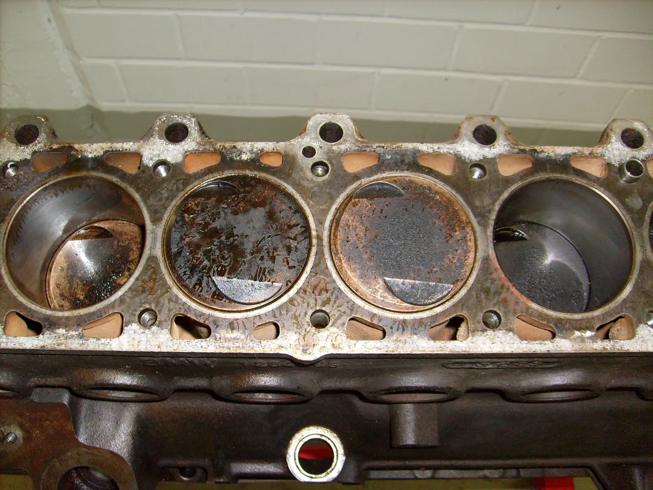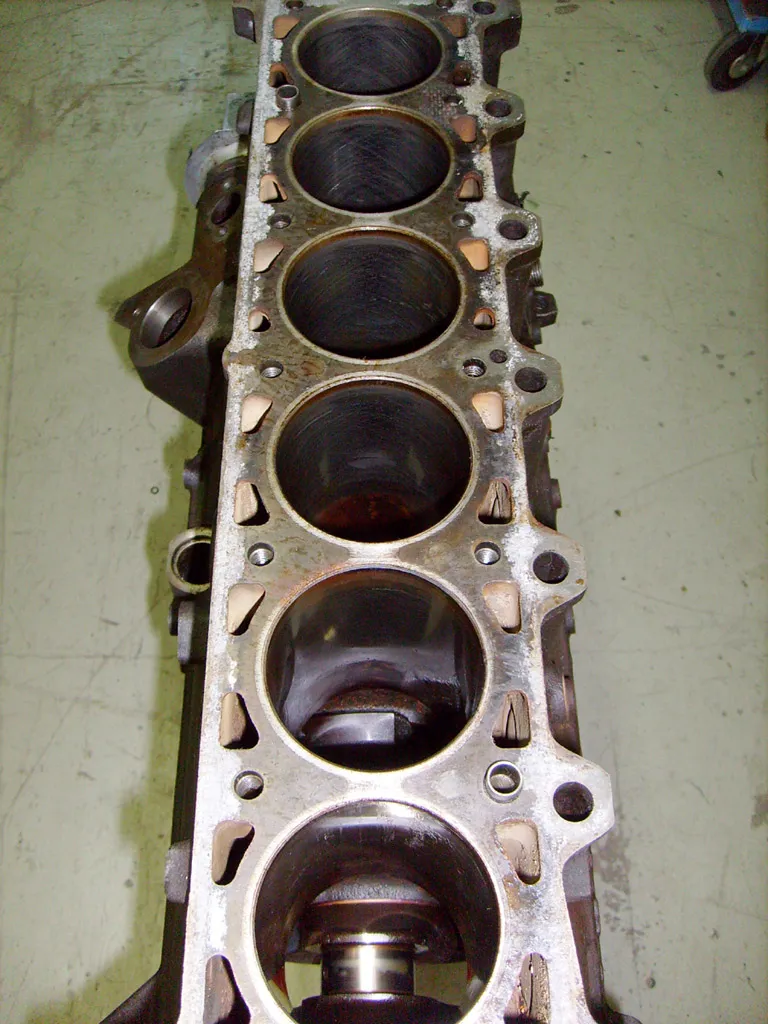 Also spannte ich nach einer Vorreinigung erstmal den Block auf den Bock, um ihn beim weiteren Zerlegen genauer zu inspizieren. Schon der Blick in die Zylinder zeigte mir, dass ich schon Schlimmeres gesehen hatte.