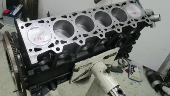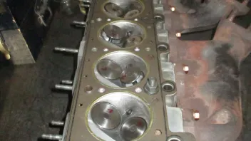 Im OT ebenfalls gut zu erkennen: Die Kolbenerhöhungen für die hemisphärisch ausgearbeiteten Brennräume des ALPINA Zylinderkopfes: