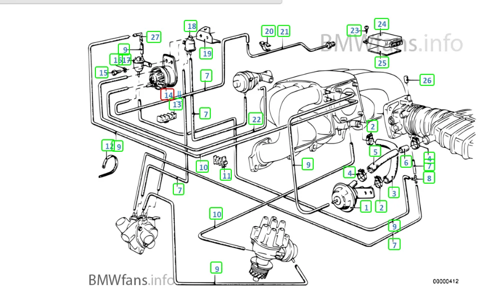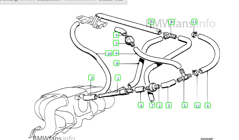 Ist zwar ein 12'79er 323i, aber nach ATM von einem 82er (Schlachtwagen, das war 1993) habe ich das neue kleinere Steuergerät, wassergesteuerter ZLS, den Schlauch vom Ventildeckel mit Abzweig zum Ansauggeweih links zur Drosselklappe und einen anderen Zündverteiler.