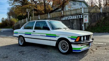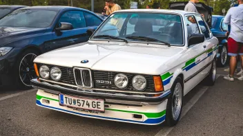 So wie die Ausnehmung rechts für das Auspuffendrohr ins Heckblech reingezimmert wurde und auf Grund der Fensterrahmen schätz ich dass das ein 315er Kastl war vo wahrscheinlich ein M20B25 mit 2,7l und Motronic drinnen werkelt... Bastelbude