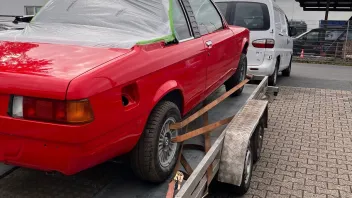 Der Motor hängt am Kran und kann in das Auto gehoben werden. Zu zweit war das absolut unproblematisch und ein paar Minuten später das Ergebnis: